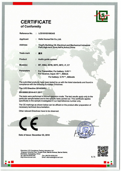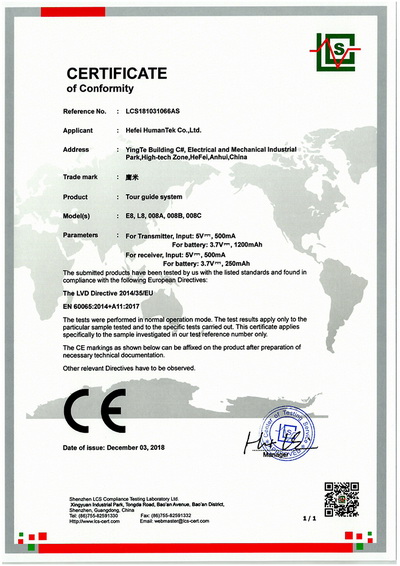 鷹米講解器系統(tǒng)榮譽(yù)證書(shū)